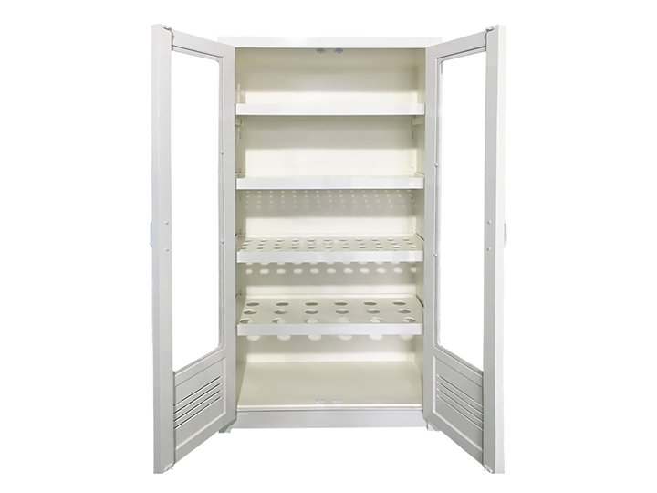 PP器皿儲存柜是在實驗過程中把所做各種實驗用的玻璃器皿、燒杯、量杯等清洗后儲存涼干的功能型柜體。